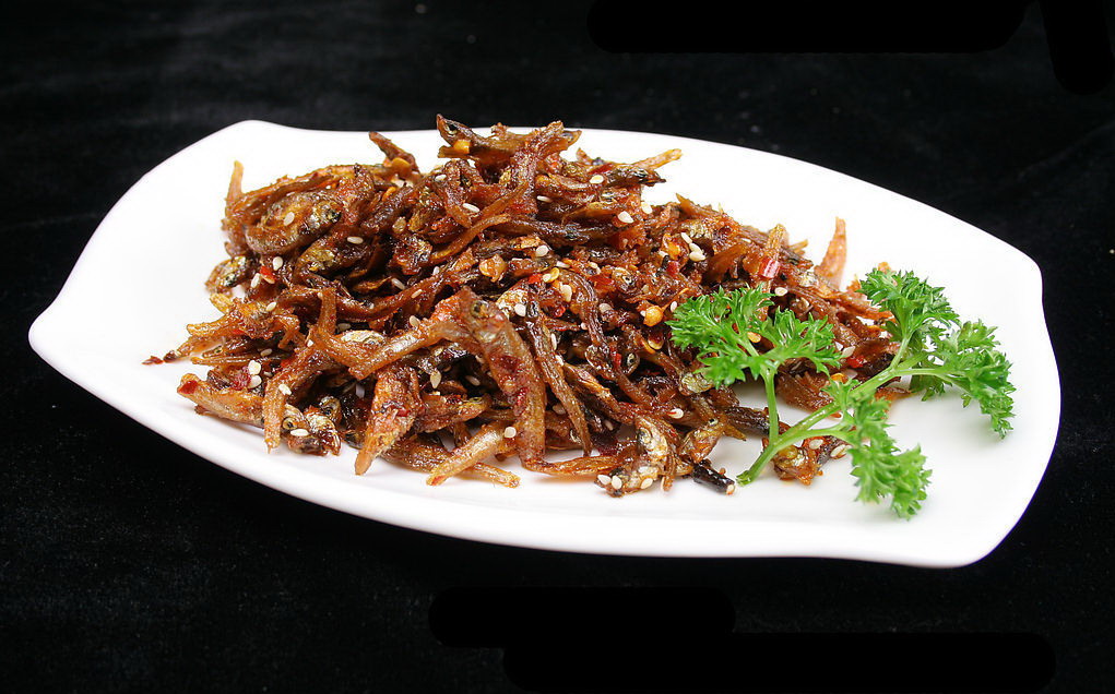 原料為小魚(yú)蝦,其中以“青皮嫩”為最佳,肉多味美,魚(yú)蝦捕撈上趁新鮮將其沖洗干凈,瀝干水,均勻地?cái)傇跓徨佔(zhàn)永铮ㄥ伾纤⒁粚佑褪顾鼈儾徽冲仯?。半小時(shí)左右,這些魚(yú)蝦就已經(jīng)焙干,一側(cè)焦黃,透出薰香,再剔去肚腸,炒豆豉辣椒或?qū)⑶嘟非嗨馇屑?xì)同炒均好,味道絕美。