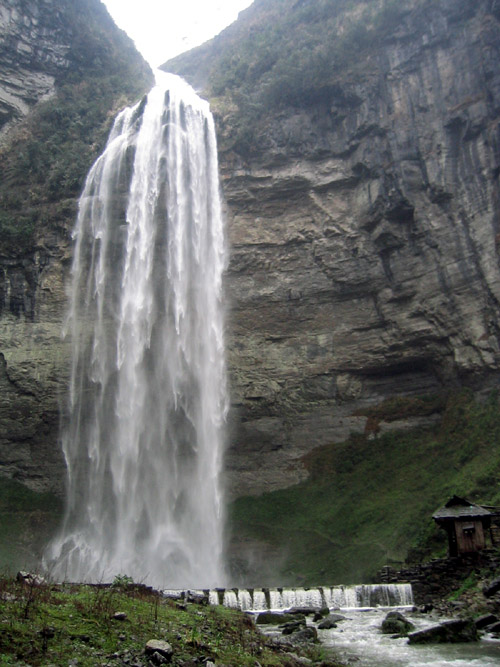 九龍溪源頭的流紗瀑布高216米,是全國(guó)最高的瀑布,有人說(shuō)它還是全世界最高的瀑布,在2011年入選“2011游客最喜愛(ài)的中國(guó)十大瀑布旅游勝地”。豐水期,滾滾流水從懸崖上飛落入深潭,猶如九龍翻波,吞云吐霧,聲若巨雷,震撼山谷,氣勢(shì)磅礴,雄奇壯觀!每當(dāng)枯水時(shí)節(jié),流水飄下懸崖,時(shí)而如輕紗拂面,時(shí)而似珠簾懸掛宛如白紗蕩滌綠潭漾起層層漣漪婀娜多姿溫柔秀雅。從正面仰望瀑布,好像瀑布是從云端飛流直下,可謂“飛流直下三千尺,疑是銀河落九天。”沿潭畔走至瀑布里去,象是猴王鉆進(jìn)了水簾洞。從瀑布背后觀瀑布,只看見(jiàn)瀑布是從一個(gè)半園形的“月亮巖”上飛瀉下來(lái)的。瀑布在飄、舞、進(jìn)、退,如浪、如波、如紗、如練。由于峽谷變幻莫測(cè)。當(dāng)陽(yáng)光照射時(shí),瀑布上簾便生出七彩長(zhǎng)虹。彩虹隨著水珠往下飄落:只見(jiàn)一彩虹落下,一個(gè)又冒出來(lái);一個(gè)緊接著一個(gè)地消失,一個(gè)緊接著一個(gè)地產(chǎn)生,那一道道閃現(xiàn)奇光的彩虹真是太美麗了!