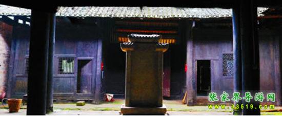 彭氏宗祠位于司城中心,在土司“寢宮”的后面,內(nèi)供歷代土司的牌位,有精美的木雕像,各具神態(tài),槢槢如生,還收藏了歷代土司制定的三綱五常法譜。為明代完歷十九年(公元1591)第24代土司彭元錦任宣慰使時所建。從祠堂大門直到正街有一條200多米長的官道,要經(jīng)過四個平臺和五段石階梯三十余個石級,逐步高升顯出一種威嚴的氣派。祠堂門口有一對石鼓,估計每只至少重五千斤以上,民間傳說是土家族古代英雄哈力噶巴從離此百多里的五官坪一只手提一只提到司城來的。祠堂前還有三棵古老的桂花樹,據(jù)說是土司時代栽植的,現(xiàn)在這些桂花樹依然蔥蘢,每當(dāng)八月桂花盛開時節(jié),司城處處桂花漂香。