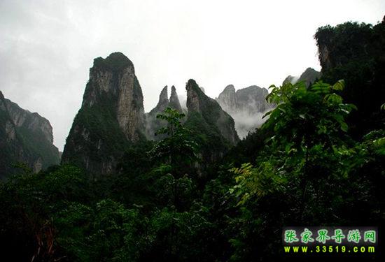 七星山介于天門、熊壁山、崇山三山之間,四座山均為四面刀載絕壁試絕壁,海拔也均在1500米以上,構(gòu)成了中國(guó)版土中最為大氣壯觀的呈垂直角度的孤峰地貌群落。而七星山為其最高最大者。