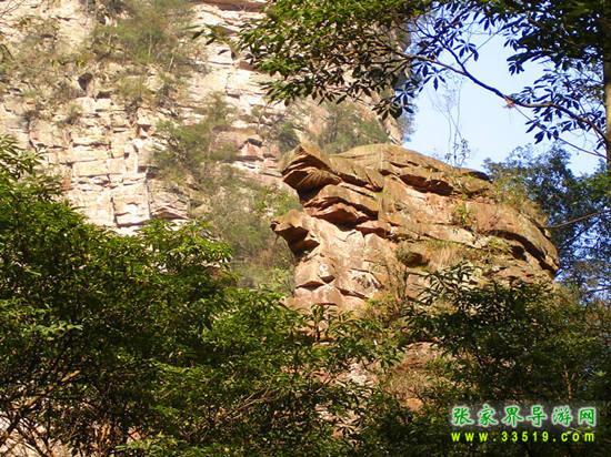 密林中有兩塊石頭,很像兩只龜重疊在一起,探頭探腦的樣子,正向著金鞭溪爬去。有人說這是“夫妻雙雙把家還”。這兒有一個荒誕的故事:億萬年前的一個晚上,海龍王通知居住在這一帶的蝦兵蟹將及所有手下,明天天一亮海水就要消退了,必須全部及時撤走。這兩只情龜只顧著花前月下,把海龍王的話當(dāng)耳邊風(fēng),第二天早上起床,望著海水已經(jīng)遠遠地退去了,后悔莫及。他們爬呀爬,只希望有一天這溪水能把他們帶回大海。有的人有不同的“版本”:這兩只龜藏在這深山老林干什么呢?為了躲避“計劃生育”。張家界像烏龜?shù)?hellip;峰很多,那都是它們干的好事呀!