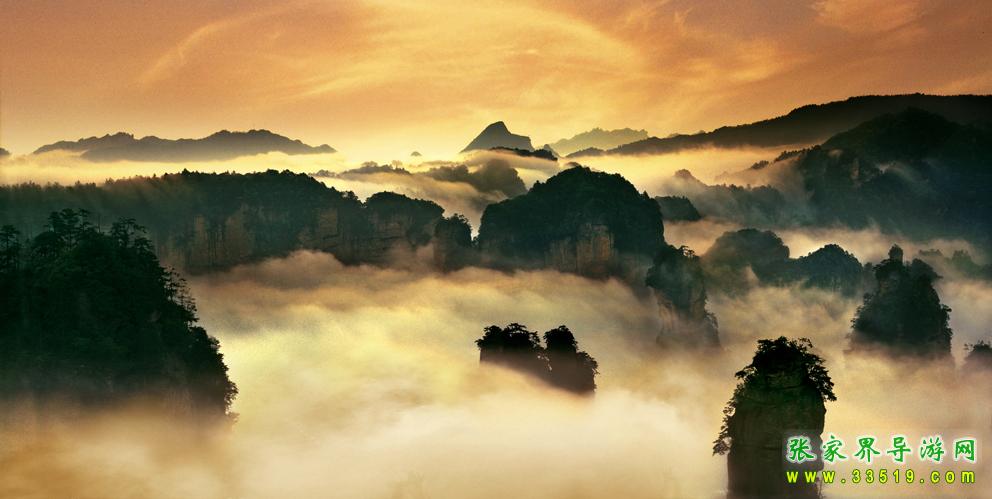 武陵源獨特的石英砂巖峰林在均屬國內(nèi)外罕見,在360多平方公里的面積中,目前所知有山峰3000多座,這些突兀的巖壁峰石,連綿萬頃,層巒疊嶂。每當雨過轉晴或陰雨連綿天氣,幽幽山谷中生出了云煙,云霧飄緲在層巒疊嶂間,云海時濃時淡,石峰時隱時現(xiàn),景象變幻萬千。霧,使晴日下堅硬的山峰變得妖嬈、飄逸和神秘。觀霧的最好季節(jié)是夏季,天子山是賞霧的最佳去處,也是攝影家常常涉足的地方。