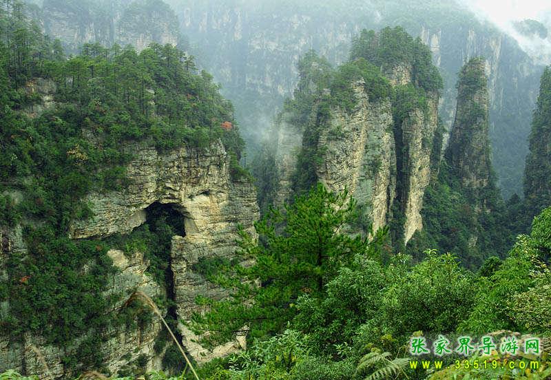 如果張家界山頂上沒有武陵松,就好比一位天姿國色的美女沒有一頭烏黑亮麗的頭發(fā)一樣,不免讓人感到很遺憾。我們平常在肥沃的土地上栽樹,都很難保證百分之百成活。然而,張家界石頭上面的森林卻如此郁郁蔥蔥,可以說是“峰頂站著松,峰壁掛著松,峰隙銜著松,松枝搖曳三千峰”。