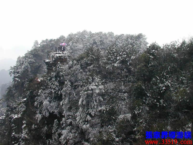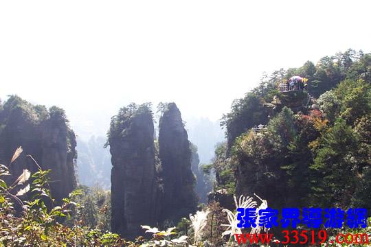 (六奇閣)請各位猜猜,這“六奇”是指哪“六奇”?大多數(shù)講對了,準確地說是指山奇、水奇、云奇、石奇、動物奇、植物奇。“江山留勝跡,我輩復登臨”;“欲窮千里目,更上一層樓”。站在這里,可以看到袁家界、楊家界、天子山、朝天觀、三姐妹峰