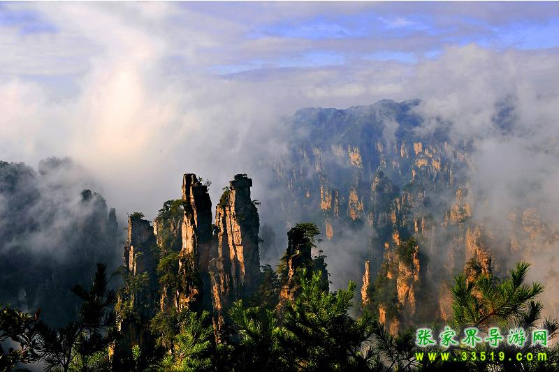 由“武陵源景區(qū)”北門進(jìn)入(門票每人248元),有免費(fèi)環(huán)保車送到乘纜車處,為保存體力,輕裝上陣,建議:1、在芙蓉賓館住兩天,門票二日內(nèi)有效;2、乘纜車上天子山(纜車費(fèi)上山每人52元)。