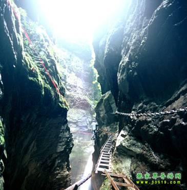 坐龍峽擁有中國第一條特種游道。粗樸的板栗木棧道,讓你零距離的親近那一潭碧幽、聽聞山泉叮咚;精巧的跳墩,讓你媳戲流泉、觸感溪瀑;原質的石坎道,讓你不得不調動全部的身心能量悉心攀援、感悟峽谷;有驚無險的鐵梯,讓你伴著腳下轟鳴的溪水,在驚怵中體味一份快慰。